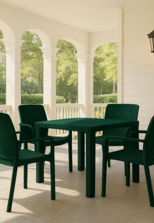 Bahar Bahçe Efes 4 Sandalye 1 Masa 80×80 Cm Yeşil Ekonomik Takım