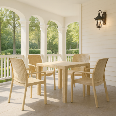 Polipropilen ve cam elyaf karışımdan mamul Efes (Rattan) koltuk ve masa rattan efektli ve mat yüzeylidir.