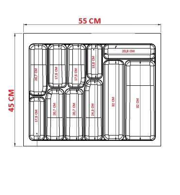 Netaks Çekmece İçi Kaşıklık, 1. kalite ABS-akrilik malzemeden üretilmiştir ve hurda ve PP içermemektedir. Eni 55 cm ve derinliği 45 cm olan ürünlerimiz, tamamen kesim ölçülerine sahiptir. Siz değerli müşterilerimizin isteğinize göre ölçü belirtmeniz durumunda ürünlerimiz özel olarak kesilerek size gönderilir.