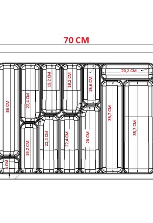 Çekmece İçi Kaşıklık, 1. kalite ABS-akrilik malzemeden üretilmiştir ve hurda ve PP içermemektedir. Eni 70 cm ve derinliği 49 cm olan ürünlerimiz, tamamen kesim ölçülerine sahiptir. Siz değerli müşterilerimizin isteğinize göre ölçü belirtmeniz durumunda ürünlerimiz özel olarak kesilerek size gönderilir.